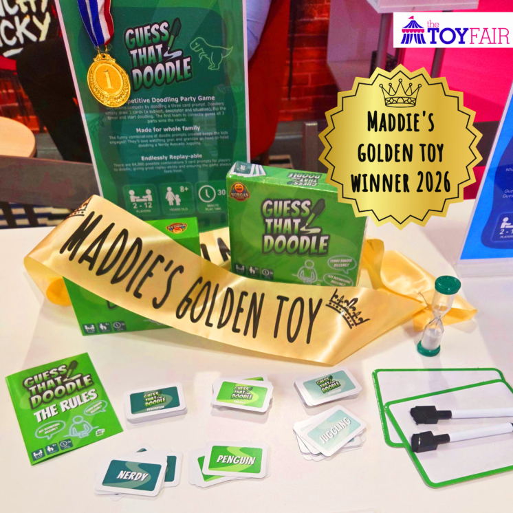 Guess That Doodle was awarded Maddie’s Golden Toy 2026 at The Toy Fair in London, presented by Maddie Moate and Gavin Inskip as the show was drawing to a close on Wednesday evening.