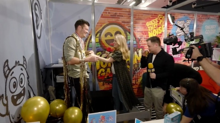 During the show, Maddie played a round of the game with us at the stand. When the award was announced, herself and Gavin returned with balloons, streamers, a sash, and a medal, catching us completely off guard.